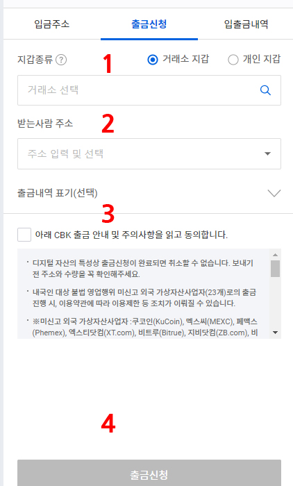 그리고 한국 거래소는 업비트 기준으로 설명드릴게요. 빗썸 코인원 기타 국내거래소도 모두 입금 방법이 비슷합니다.